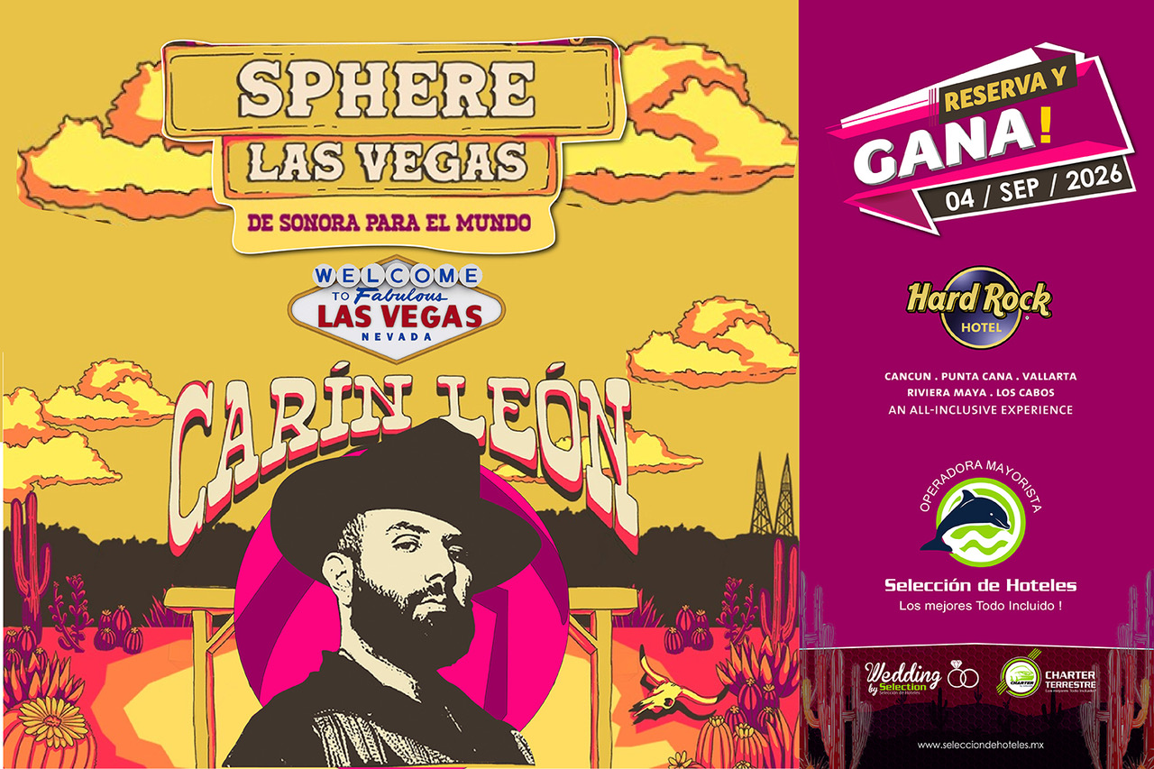 Todas las reservaciones individuales y grupales realizadas en alguna de las propiedades de PAM Hotels, elaboradas antes del 31 de julio de 2026, participan por pases dobles para asistir a la presentación del cantante este próximo 04 de septiembre en el impresionante recinto The Sphere.